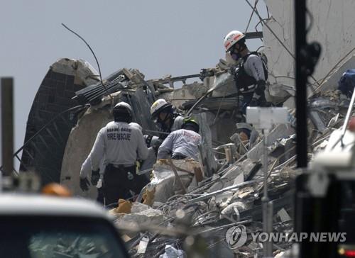 플로리다주 아파트 붕괴 현장을 수색 중인 구조대 [AFP=연합뉴스]