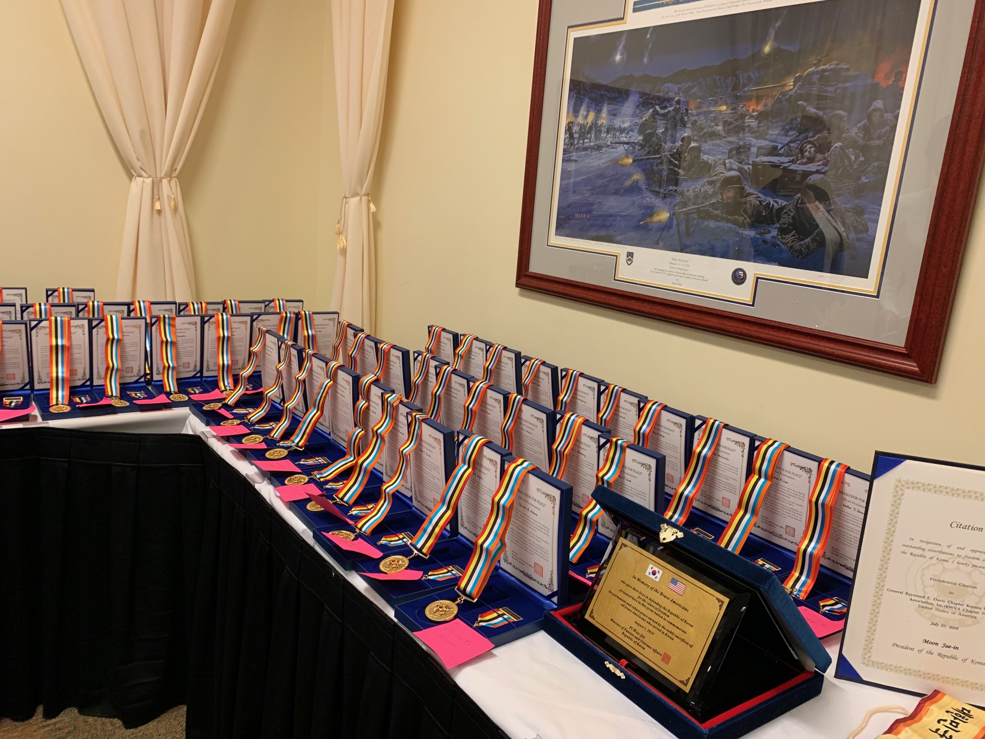 보훈처 이병구 차장(차관급)은 이날 열린 ‘한국전 참전용사 기념식’에 참석해 이 지역의 한국전 참전용사들에게 ‘평화의 사도 메달’을 직접 수여하고 한국전 참전용사회 제19지구 ‘레이먼드 데이비스 챕터’에 문재인 대통령의 표창장을 전달했다.