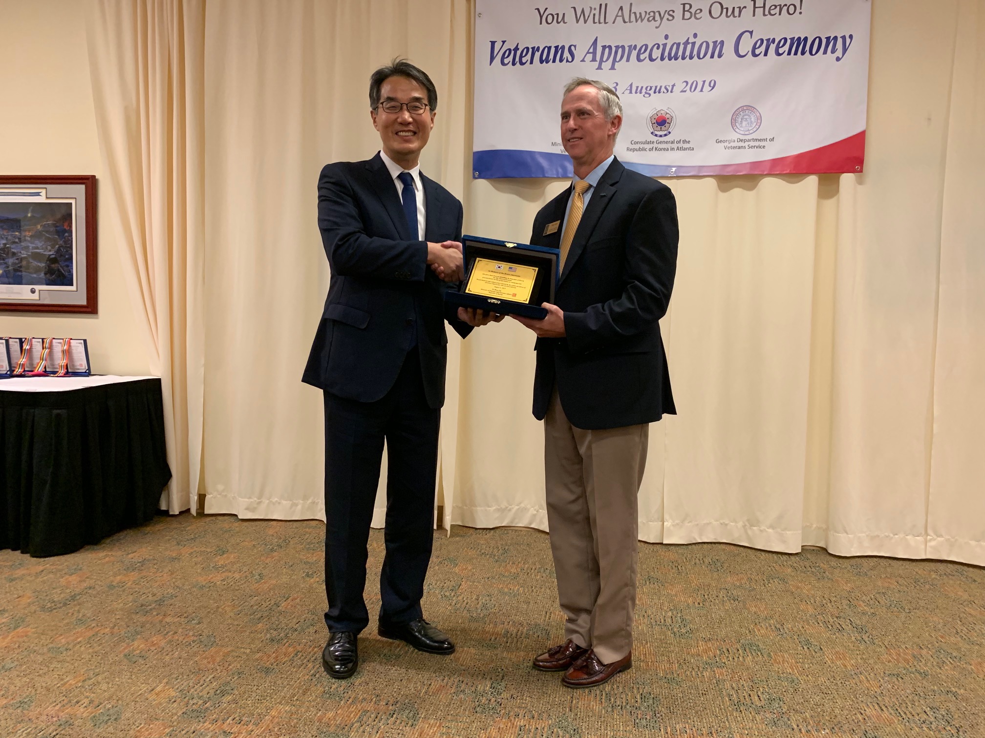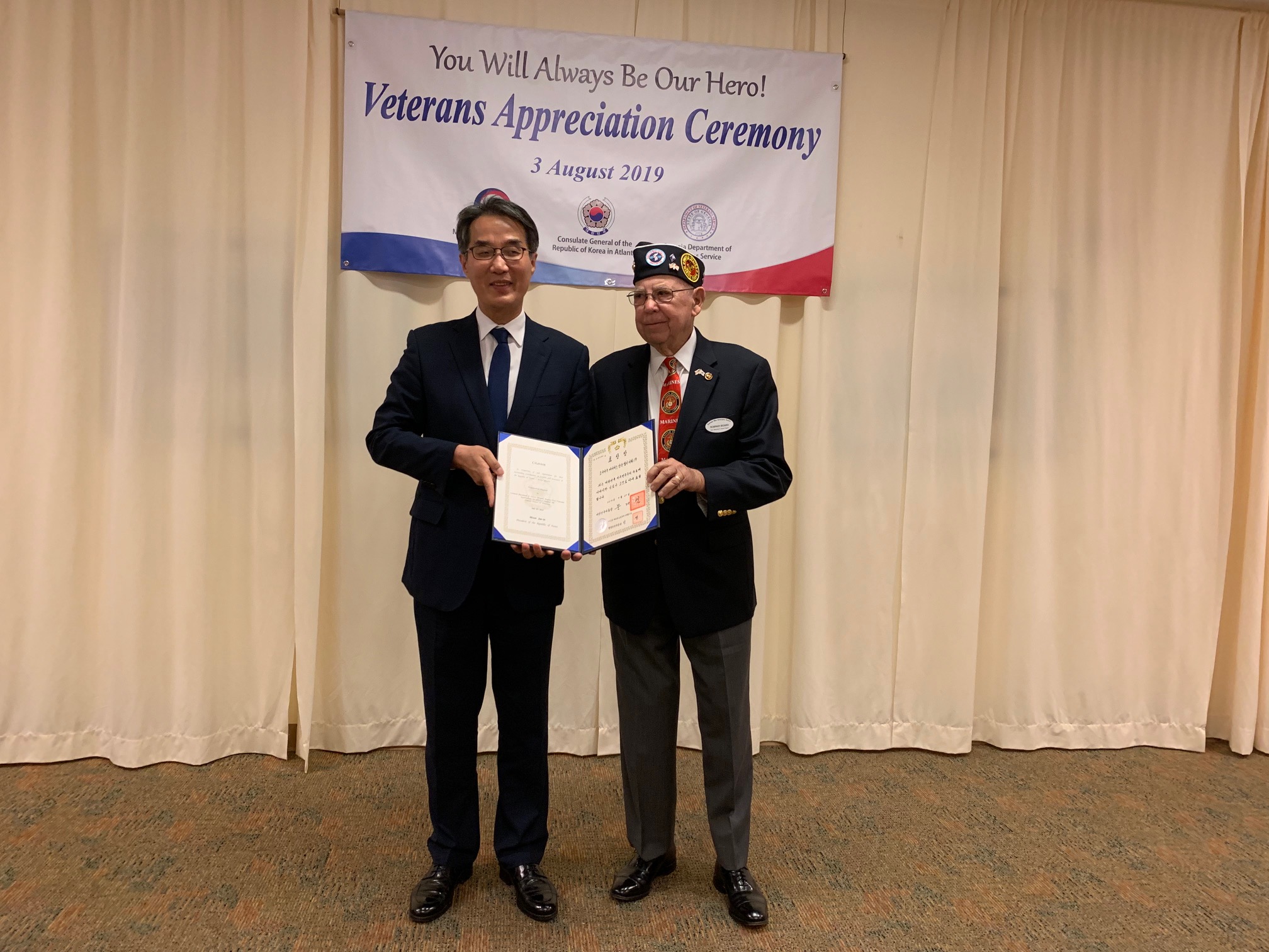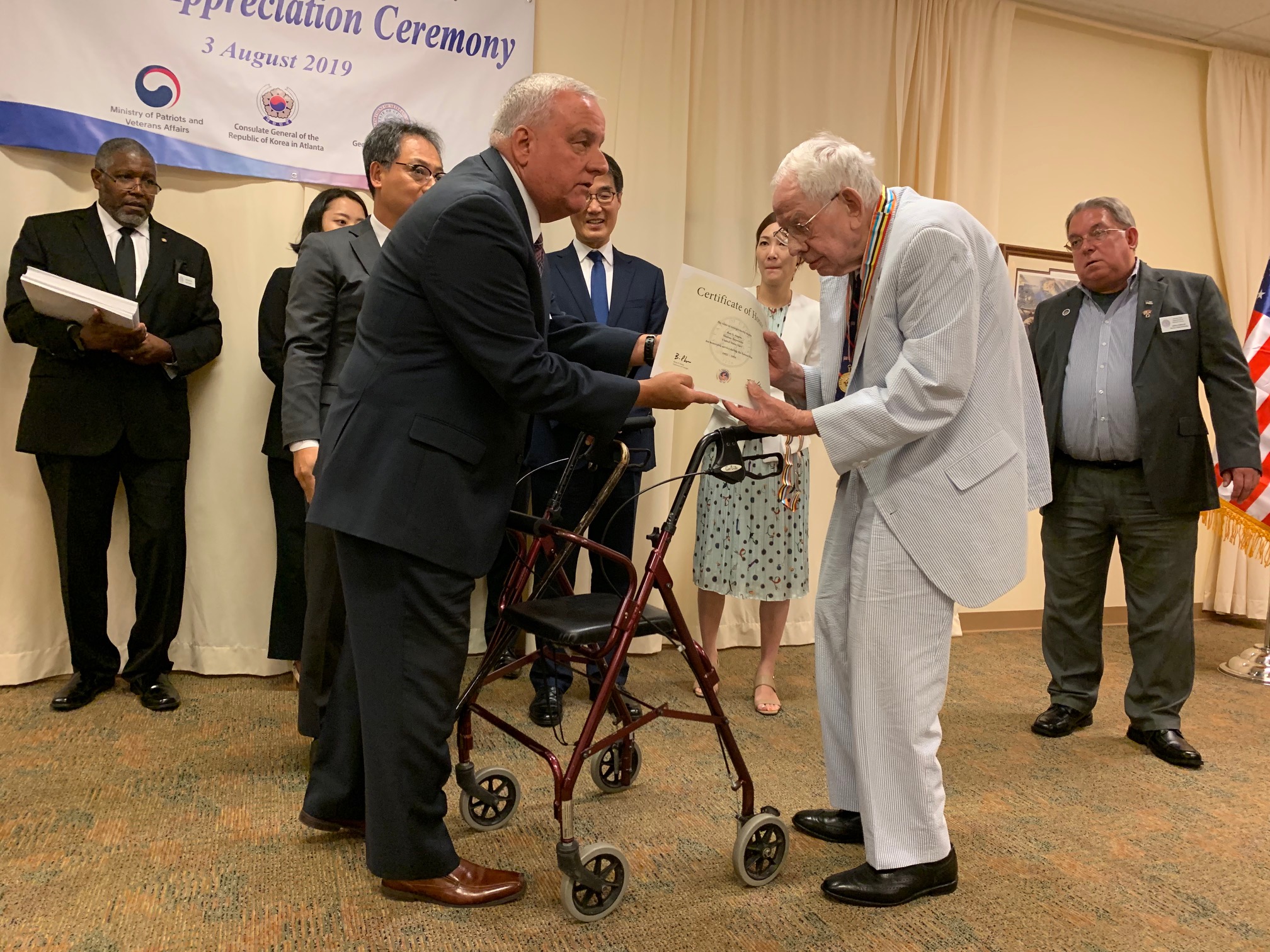 이날 참전용사들에게 브라이언 켐프 주지사 명의의 명예증서를 전달한 마이크 로비 조지아주 보훈처장은 “자유를 수호한 조지아주의 한국전 참전용사들이 자랑스럽다”고 인사했다.