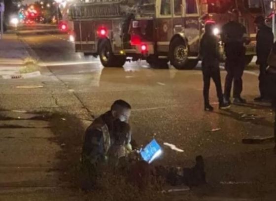 해당 사진에는 소방관 라이언 벤튼이 전날 교통사고 현장에서 구조된 어린 아이가 사고 충격에서 헤어나오지 못하자 아이를 품에 안고 달래주는 모습이 담겼다.