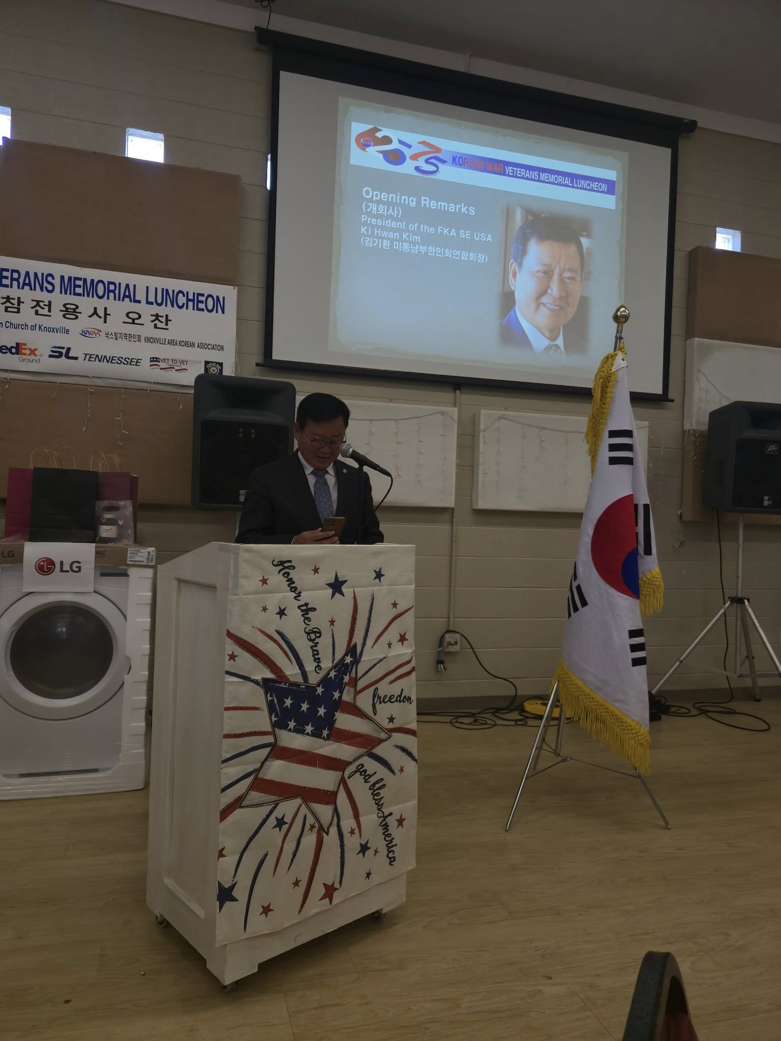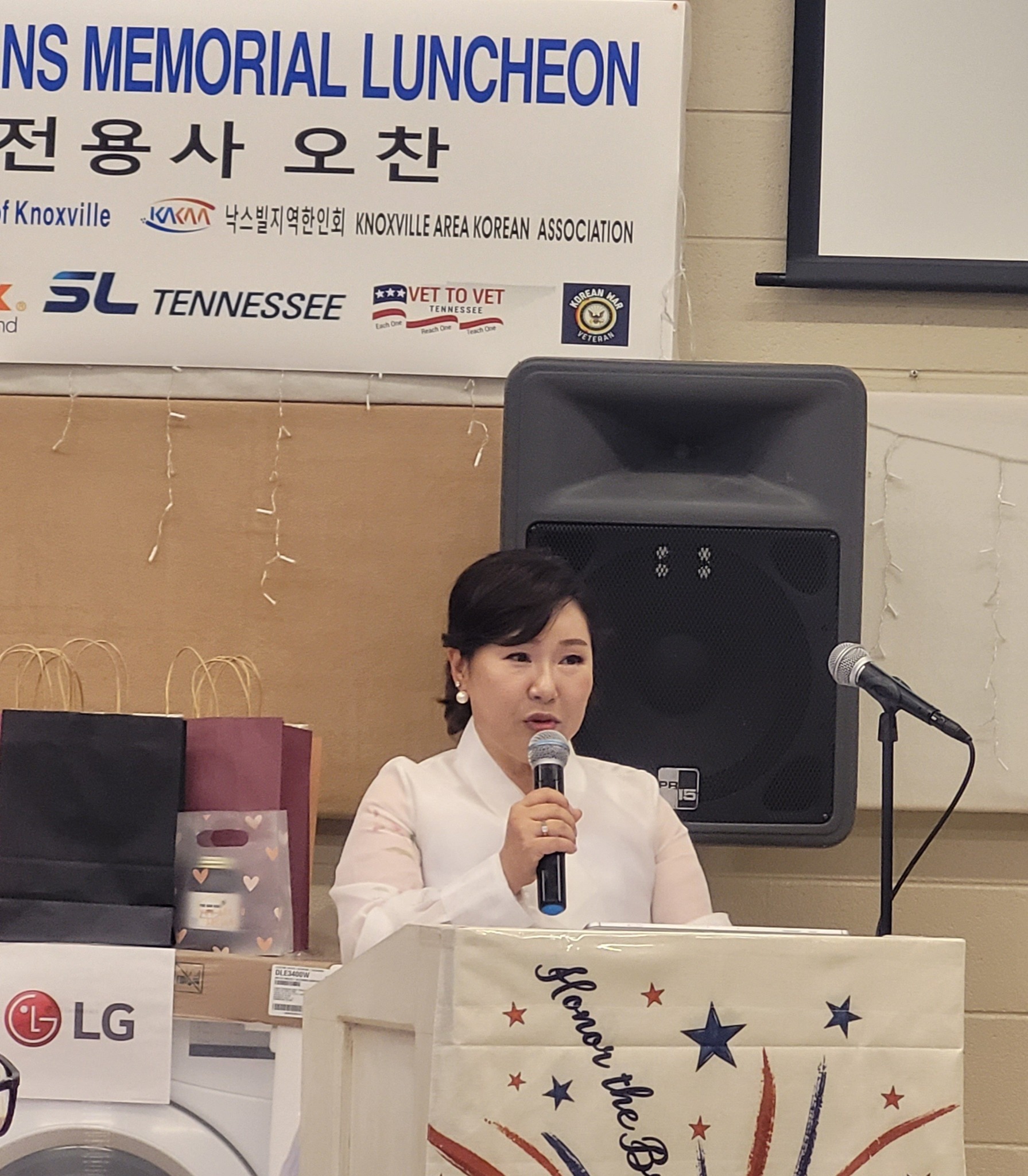 백현미 테네시한인회연합회장은 환영사를 통해 “한국전쟁은 잊혀진 전쟁이라 불리지만, 우리는 절대 잊지 않을 것”이라며, “자유는 주어진 것이 아니라 여러분의 피와 용기로 얻어진 것”이라고 말했다. 그는 마지막으로 “이 꿀은 절대 여러분보다 더 달콤하지 않다”는 유쾌한 멘트로 참석자들의 웃음을 자아냈다.