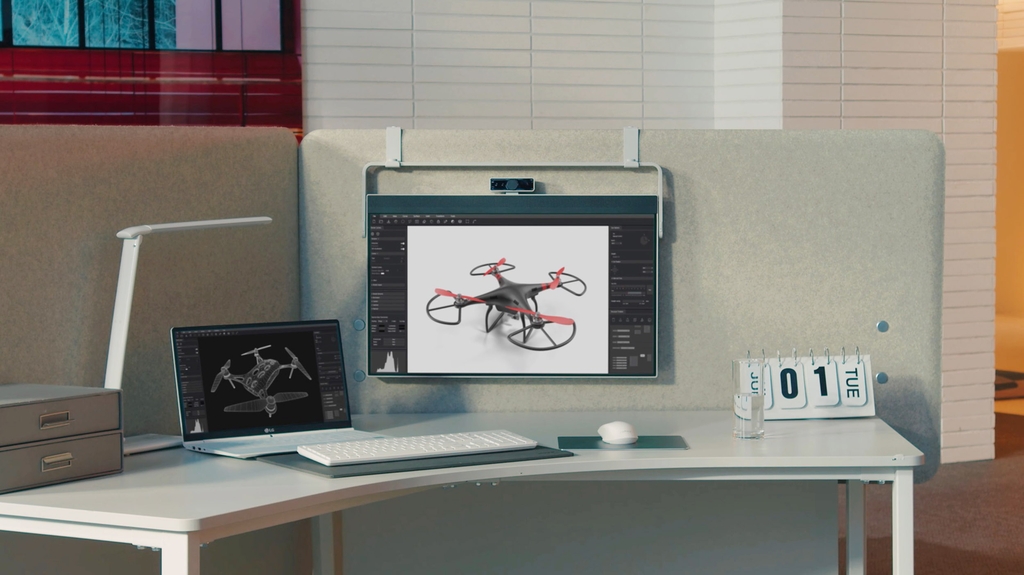 사무실이 아닌 다른 공간에서 노트북과 대화면 모니터를 연결해 멀티태스킹 작업을 하거나 별도의 장비 없이 원격 화상 회의를 진행하는 등 자신만의 최적화된 업무 환경을 구축하고 싶은 고객의 수요를 반영해 제품을 개발했다.