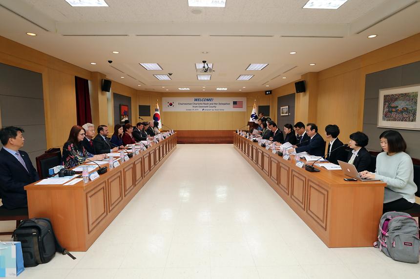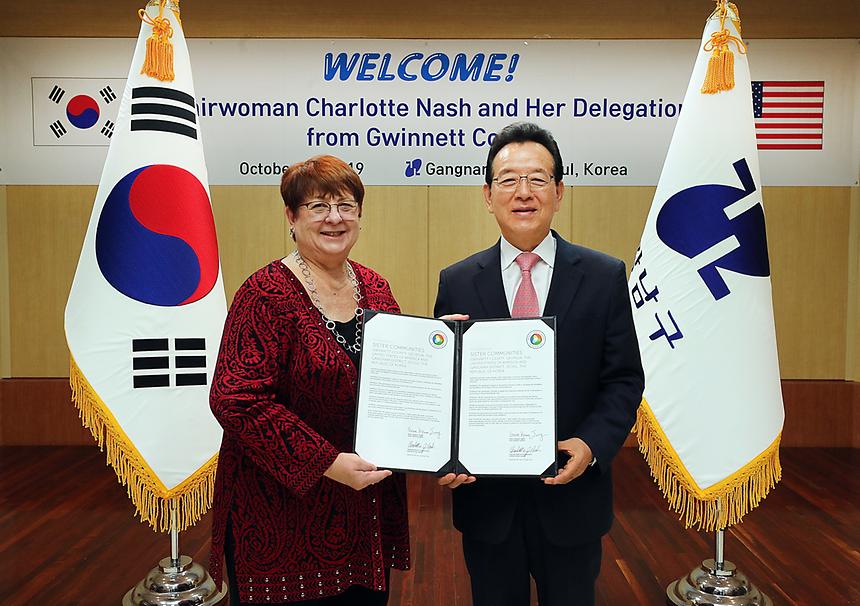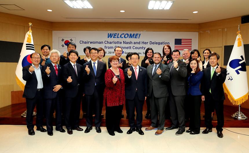 귀넷카운티 대표단(단장 샬럿 내시 의장)과 강남구(구청장 정순균)는 29일 오전 11시30분(한국시간) 구청 3층 큰회의실에서 ‘강남구-조지아주 귀넷카운티 자매결연 10주년 기념 귀넷카운티 경제대표단 간담회’를 개최했다.