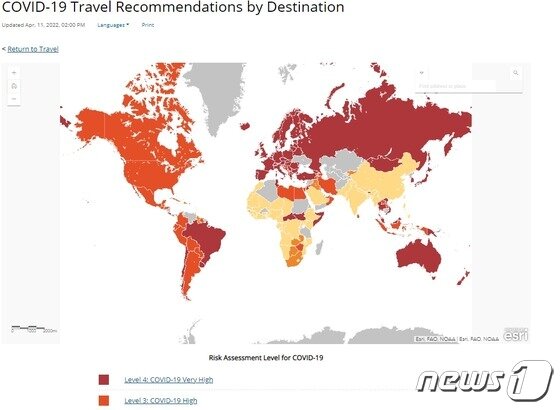 로이터통신에 따르면 질병통제예방센터(CDC)는 13일 성명을 통해 이같이 밝히며 “앞으로 4단계 여행 경보는 매우 급격한 환산세를 경험 중인 국가에만 내려질 것”이라고 전했다.