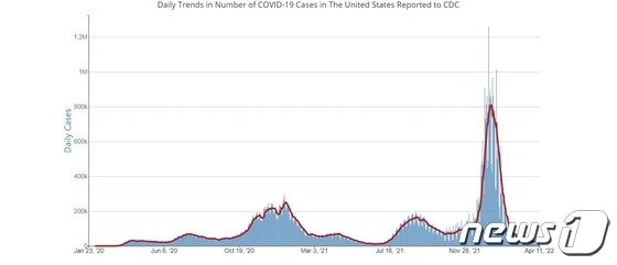 미국에서는 오미크론 파동에 따라 지난 1월 중순 일주일 평균 하루 확진자 수가 80만명을 돌파하다 최근 이 수치는 3만명대를 오르내리고 있다.