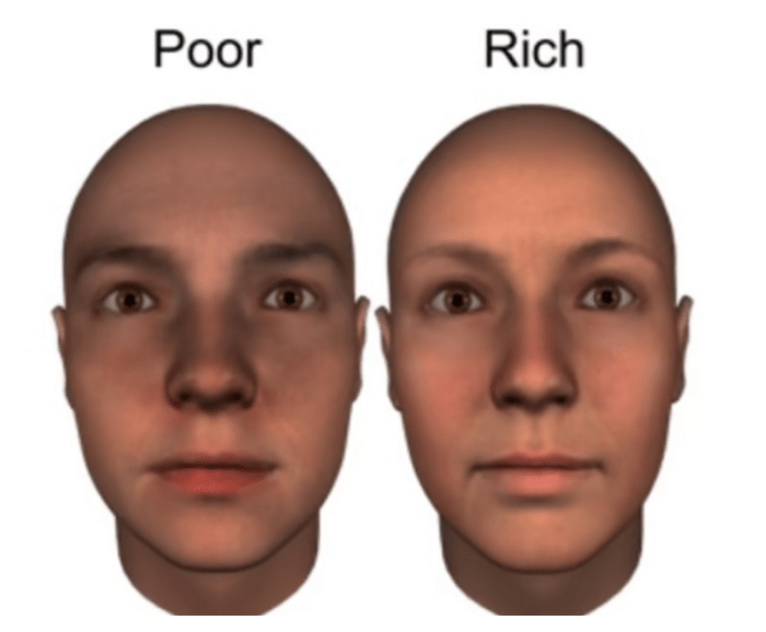 31일 데일리메일 등에 따르면 영국 글래스고 대학교 토라 비욘스도티르 박사팀은 “부(富)에 대한 인식에 영향을 미치는 것은 얼굴 모양”이라며 “사람들은 ‘부자들은 얼굴이 좁고 친근한 인상을 가졌고, 가난한 사람들은 우울하고 무능해 보인다’고 인식한다”고 밝혔다.