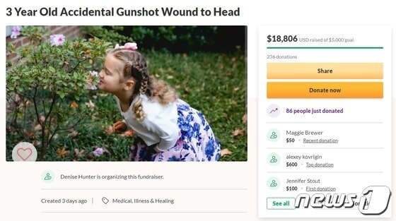 29일 CNN 등에 따르면 노스캐롤라이나 핸더슨 카운티 셰리프국은 이번 오발사고로 에일리 고든(3)양이 결국 숨졌다고 보도했다.