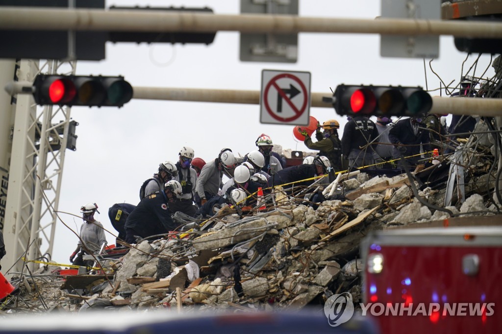 아파트 붕괴 사망자 12명으로…실종자 149명 admin 5 years ago 플로리다 아파트 붕괴사고 구조현장 [AP=연합뉴스 자료 사진] 플로리다주 12층 아파트 붕괴 참사 사망자가 12명으로 늘어났다. 29일 AP 등 외신에 따르면 다니엘라 레빈 카바 마이애미데이드 카운티장은 브리핑에서 아파트 잔해에서 추가 사망자 한 명을 확인했다고 밝혔다. 이로써 사고 엿새째인 이날 실종자 수는 149명이 됐다. 론 드샌티스 플로리다 주지사는 기자회견에서 “우리는 수색을 멈추지 않는다”며 희생자들이 발견될 때까지 실종자 구조 작업은 계속될 것이라고 말했다. 유튜브로 보기