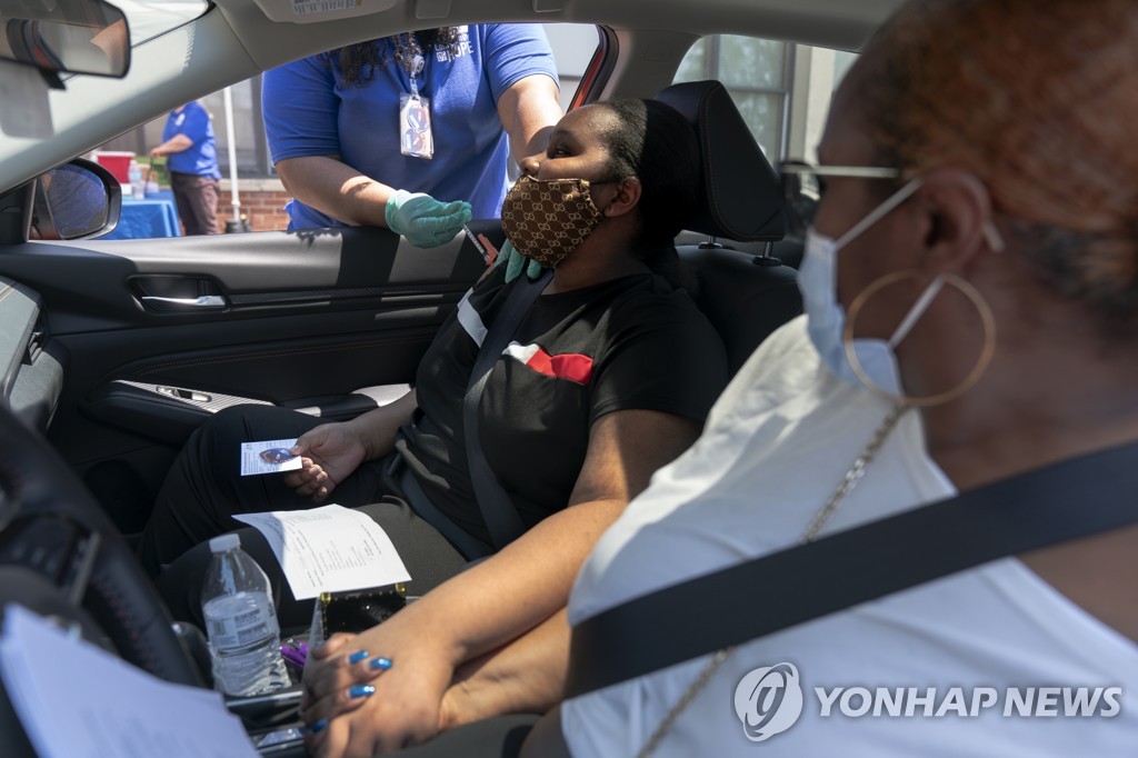 워싱턴에서 한 12세 소녀가 엄마 손을 잡고 신종 코로나바이러스 감염증(코로나19) 백신을 맞고 있다. [AP=연합뉴스 자료사진]