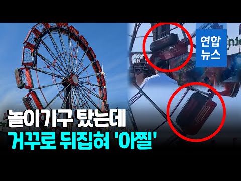 놀이공원 관람차 좌석이 위아래로 뒤집혀 빙글빙글 돌아갑니다. 지상에서 지켜보는 사람들은 발만 동동 구릅니다.