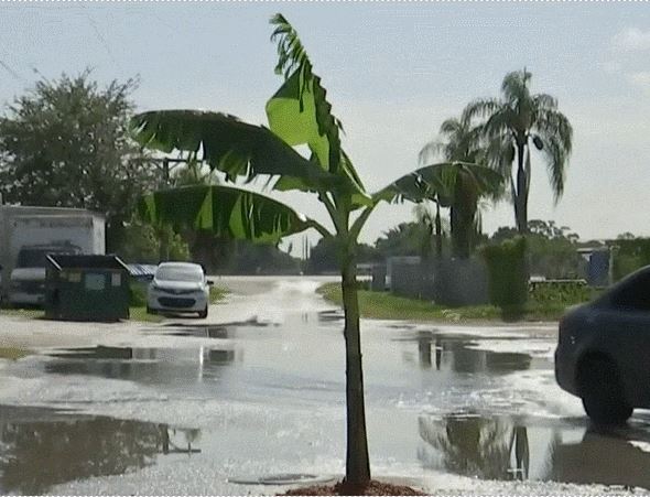 지난 8일 현지 언론에 따르면 플로리다주 리 카운티 한 도로에 최근 바나나 나무 한 그루가 심어졌다.