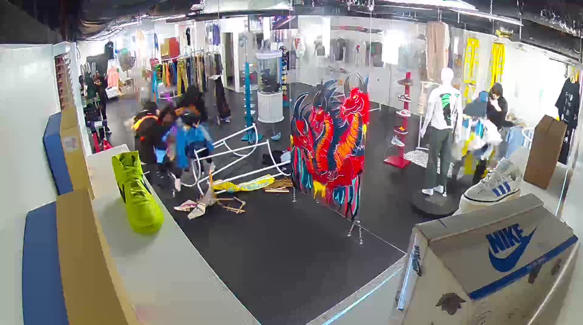 경찰이 공개한 감시카메라 영상에 따르면 이날 상점 안으로 천천히 걸어 들어온 6명의 남성들은 매장 안을 한바퀴 돌아보는가 싶더니 이내 옷걸이와 마네킹 등에 진열된 옷들을 손에 잡히는 대로 집어 든 채 달아났다. 이들이 범행을 저지르는 데는 1분도 채 걸리지 않았다.