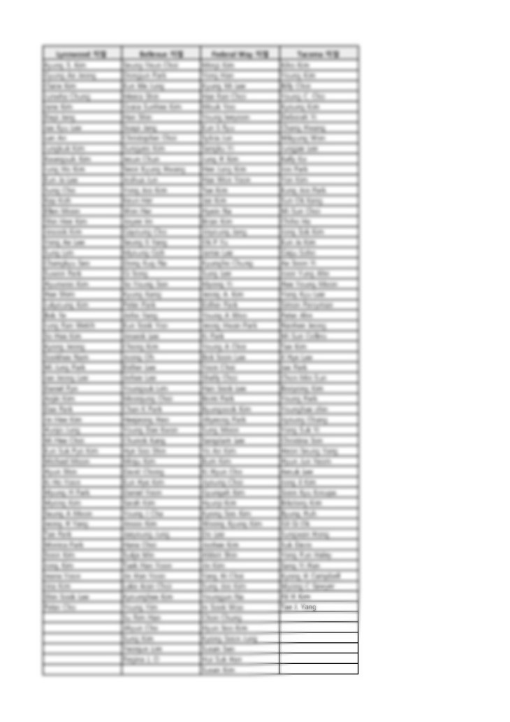 한인단체들이 공개한 수혜 명단/모자이크 처리