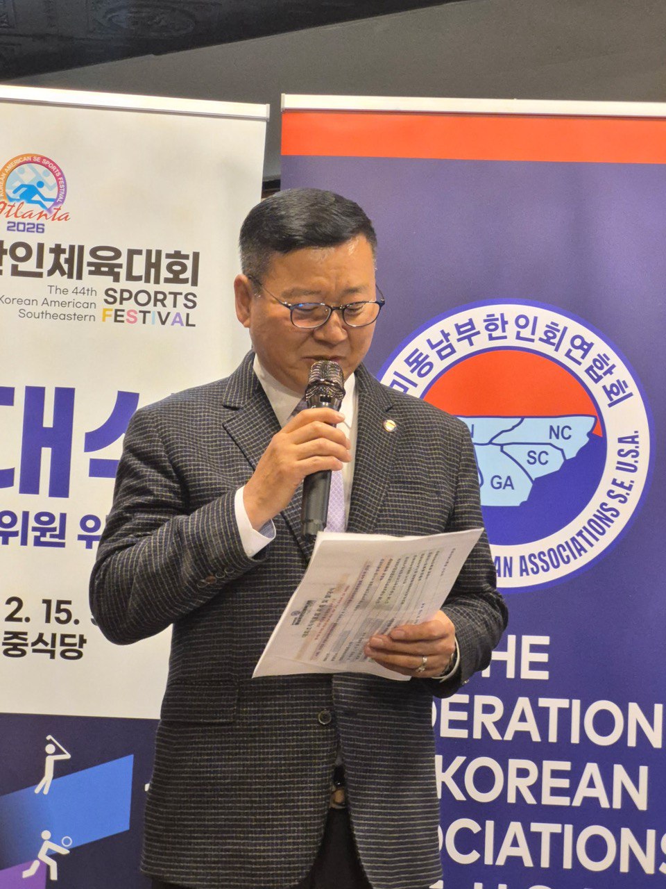 경과 보고는 천선기 대회조직위원장이 맡아 준비 상황을 설명했으며, 권오석 조지아대한체육회 경기조직위원장은 ‘동남부 한인들이 하나되는 체육대회’를 주제로 대회 취지를 소개했다.
