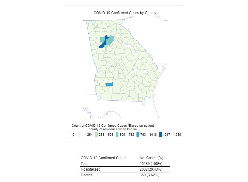 주보건부가 8일 오후7시 발표한 통계에 따르면 확진자는 낮12시보다 소폭 증가한 1만189명으로 집계됐다. 이에 따라 조지아주의 확진자는 지난달 24일 1000명을 넘어선 이후 15일만에 10배가 급증해 1만명을 돌파하게 됐다.