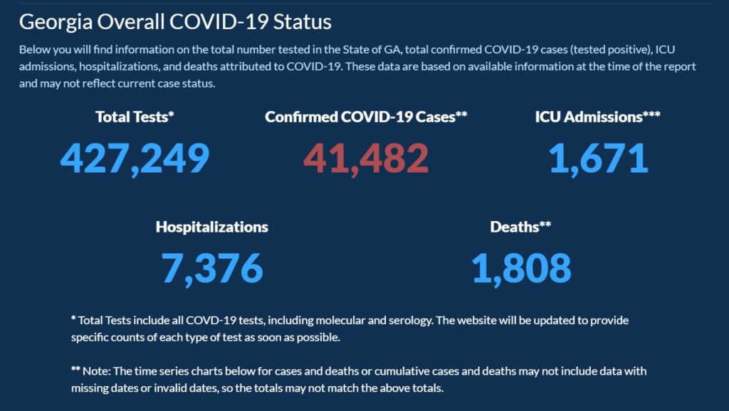 조지아주 보건부의 22일 오후 7시 통계에 따르면 조지아주 코로나19 사망자는 1808명으로 하루동안 33명 증가했다. 전날인 21일 무려 78명의 사망자를 기록한 뒤 하루만에 진정세를 보였다. 하지만 이달들어 675명이 사망하는 등 하루 평균 30명 이상이 사망하고 있어 우려를 낳고 있다.