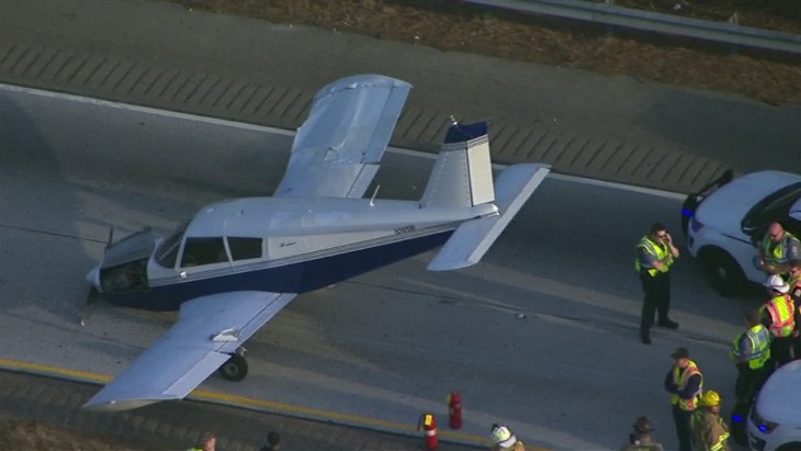 24일 오후 퇴근길 차량들로 붐비기 시작한 I-985 고속도로 위로 소형 비행기 한 대가 비상 착륙하는 일이 벌어졌다.