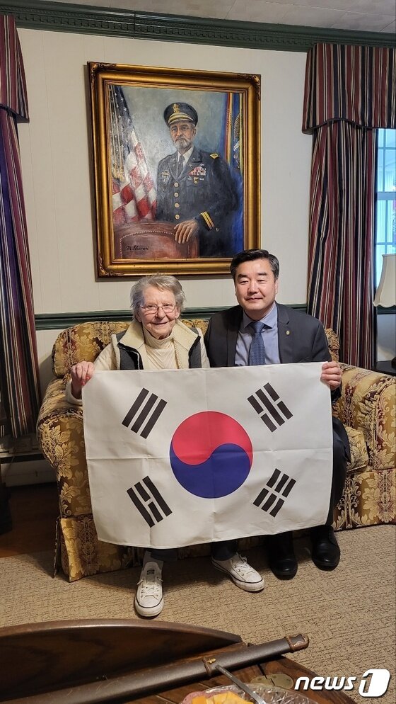 윌리엄 웨버 대령 부인 애널리 웨버 여사(왼쪽)와 표세우 전 주미 국방무관(오른쪽).© 뉴스1 |