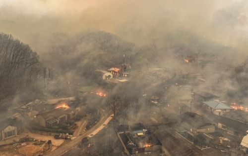한국 ‘산불 사태’로 인해 사망자 1명, 부상자 2명이 늘면서 인명피해 규모가 모두 59명으로 불어났다.