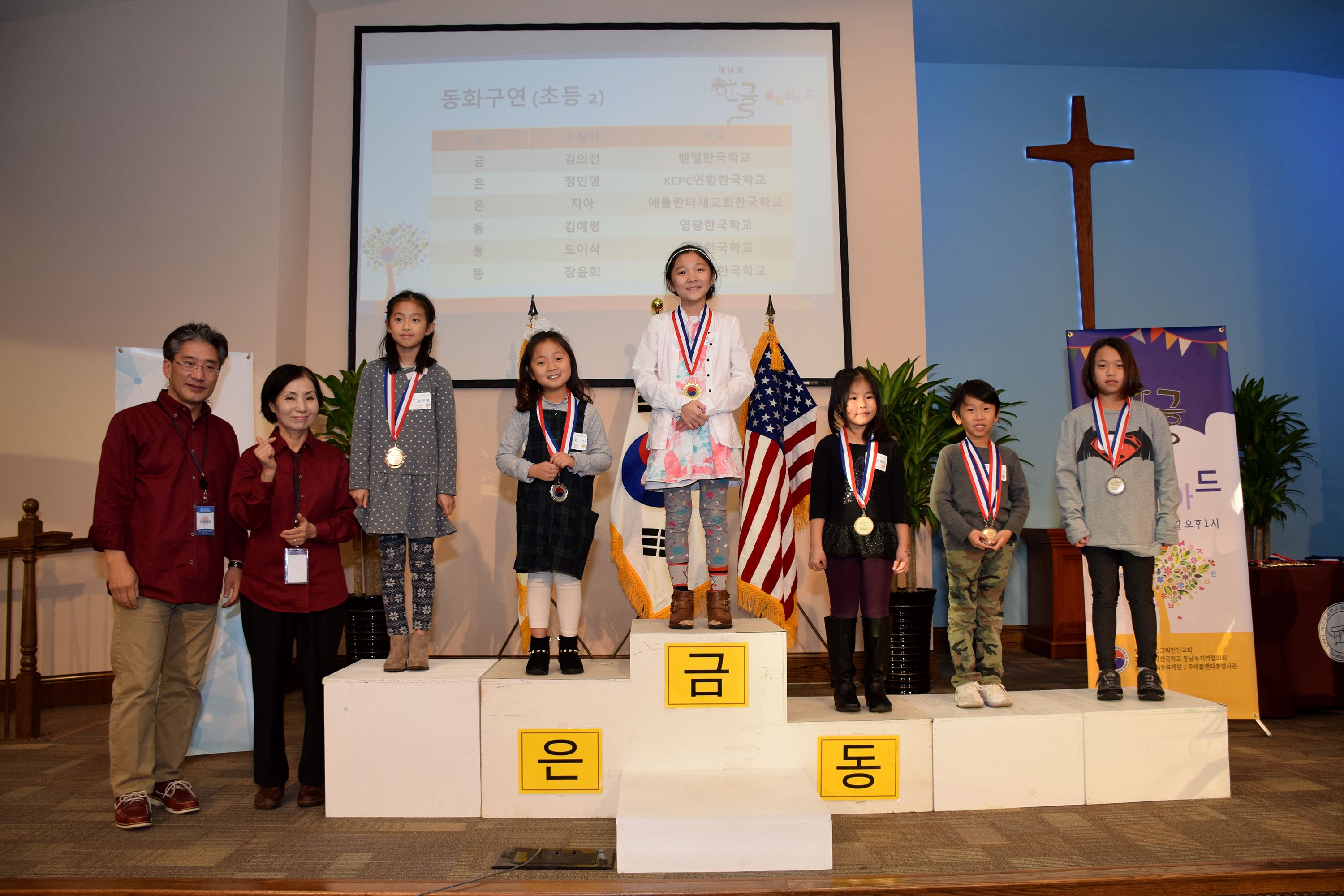 초등2 금상(김의선, 벧엘), 은상 (정민영, KCPC한국학교),(지아, 새교회), 동상 (김예령, 염광),(도이삭 , 대건),(장윤희, 슈가로프)