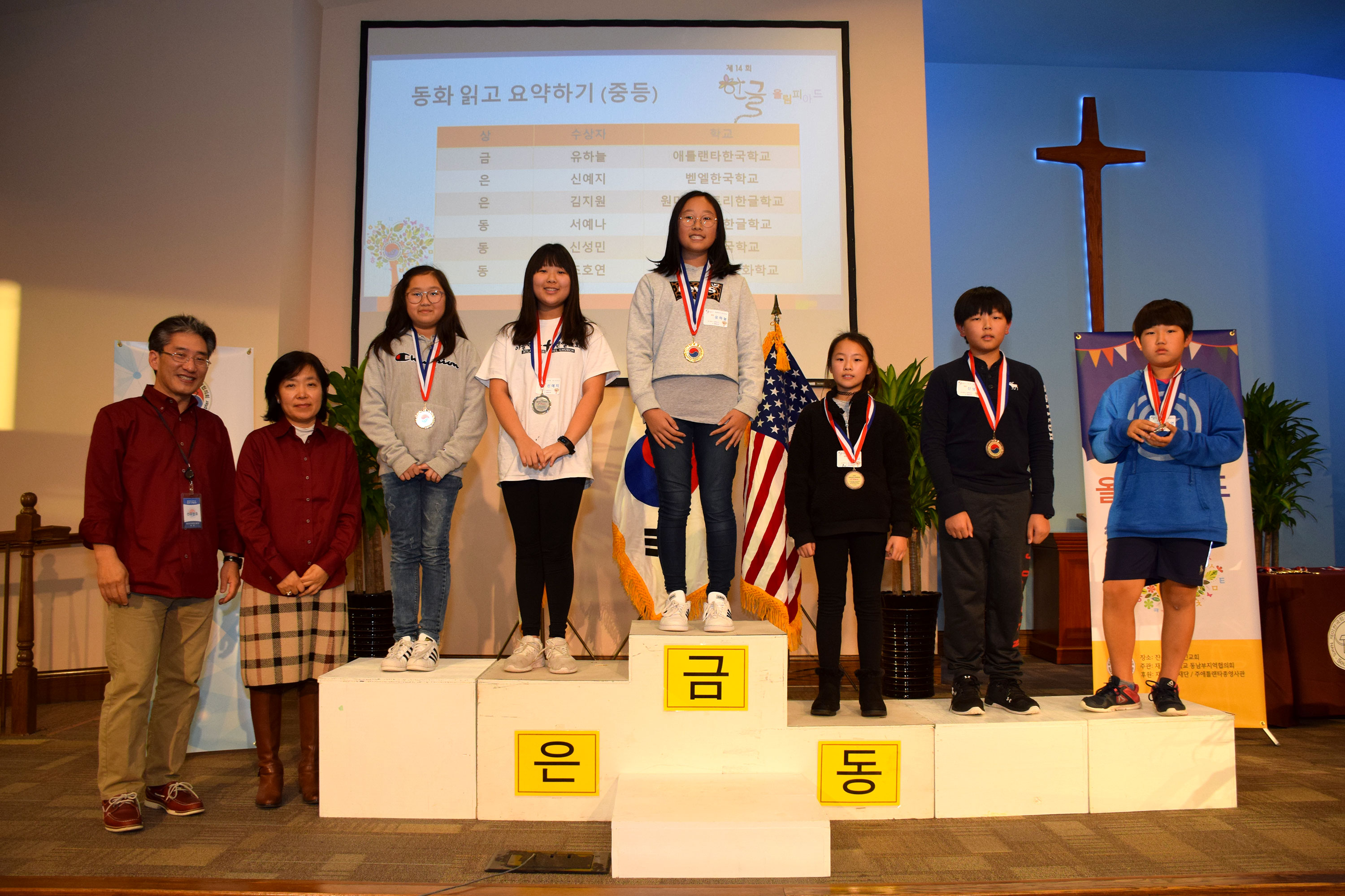 중등 금상(신예지, 벧엘), 은상(이지안, 그린빌),(진용민, 냇가) 동상(신성민, 염광),(유하늘, 애틀랜타), (이대혜, 동서남북)