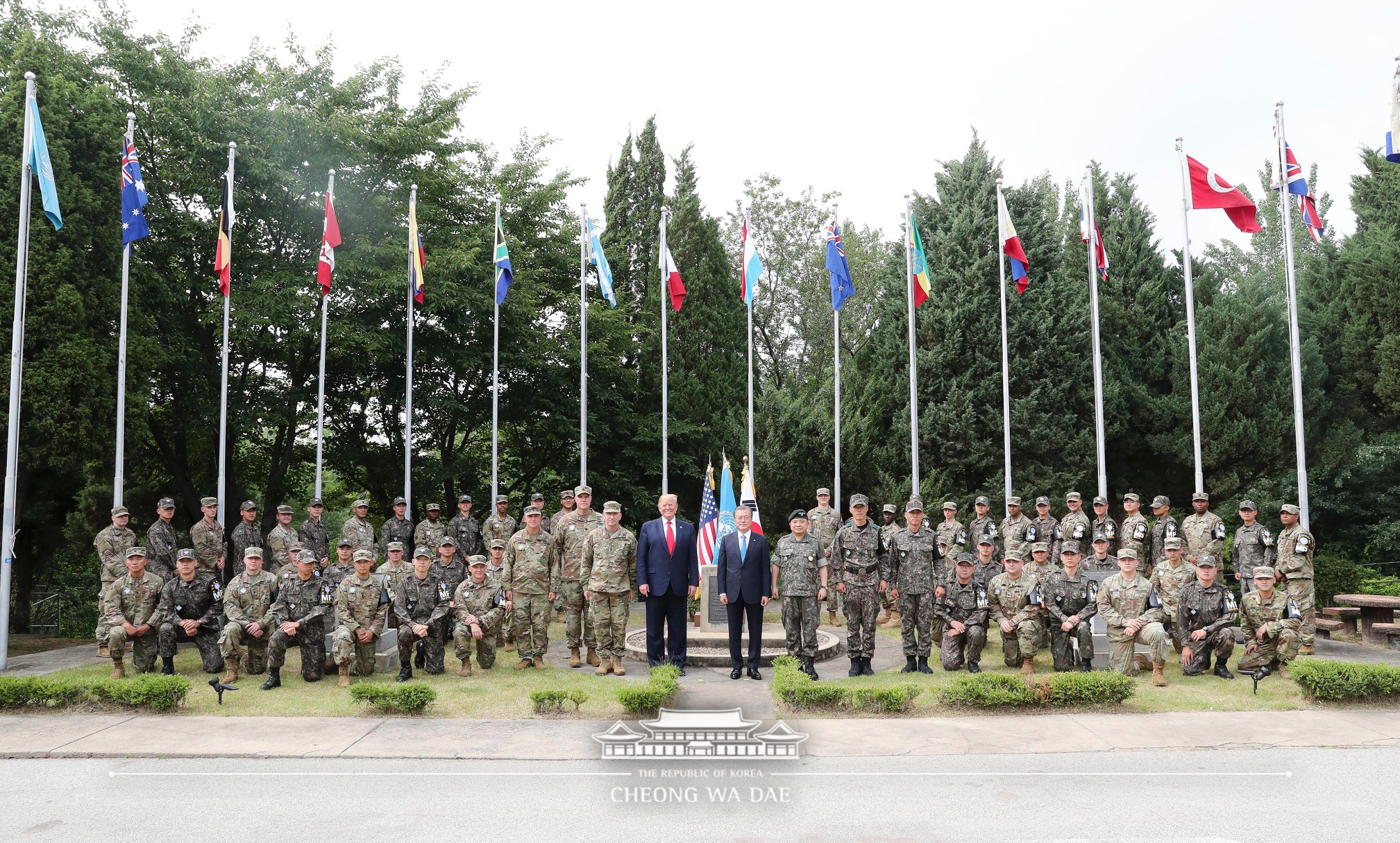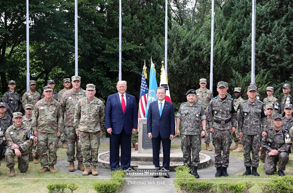 비무장지대에서 함께 기념촬영을 하고 있다.