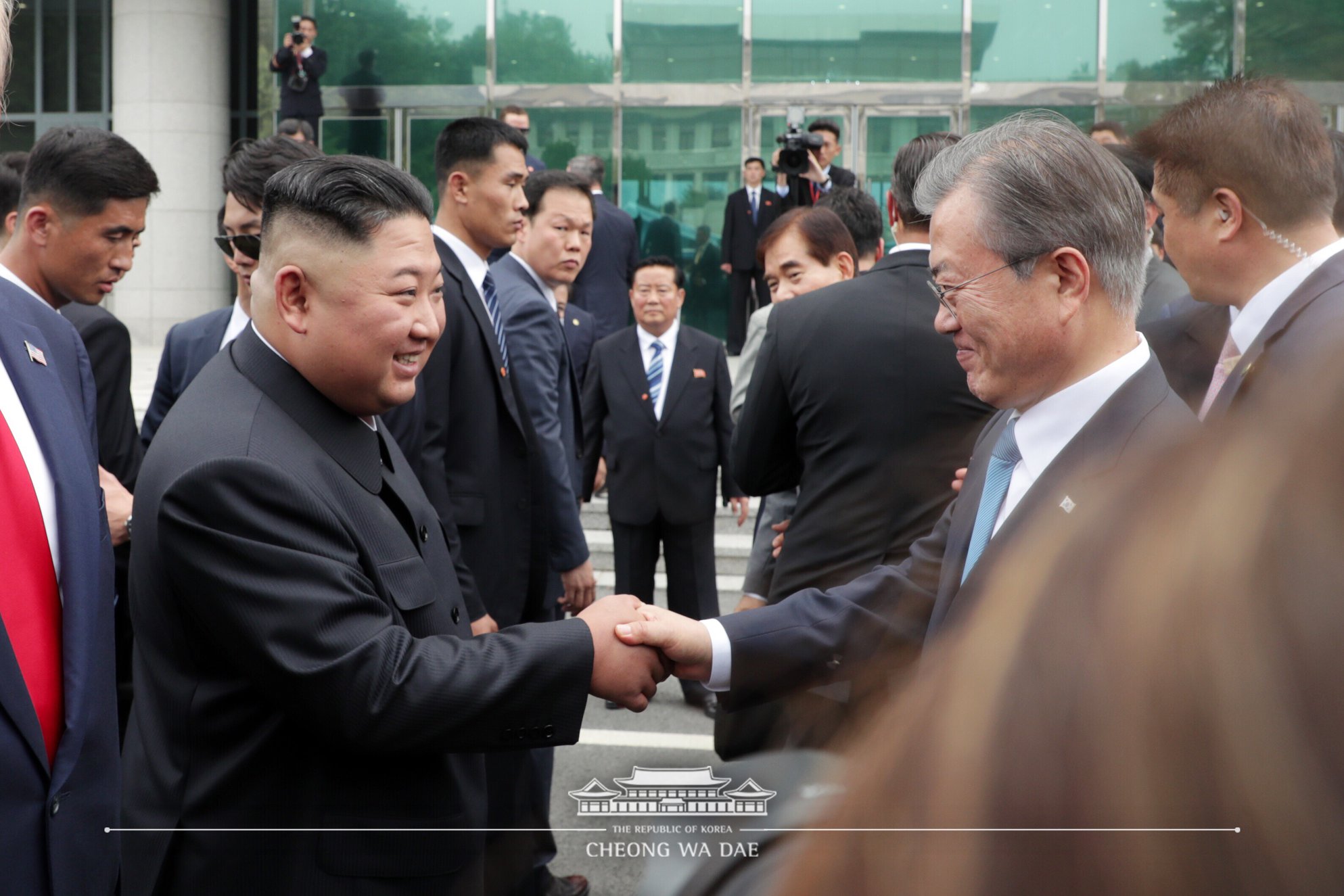 김정은 위원장과 역사적인 만남을 갖는 순간.