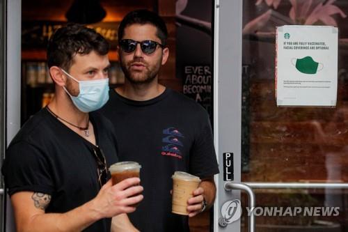 뉴욕 타임스퀘어 인근서 마스크를 쓴 시민과 쓰지 않은 시민 [로이터=연합뉴스]
